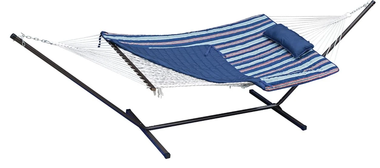 - Hammock combo includes steel stand, cotton rope hammock, hammock pad and pillow