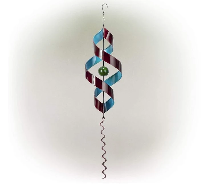 • Wind spinner is made from multi-colored metal curved swirls and includes a hook to provide a unique and decorative addition to your home’s exterior decor