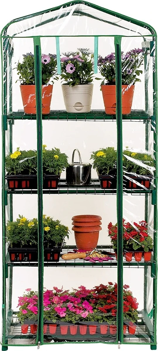 - Help Your Houseplants Thrive During Cold Winters with the Backyard Expressions Indoor Lightweight Clear Plastic Four Shelf Mini Greenhouse, Featuring a Compact, Four Shelf Design. The Clear Plastic Greenhouse is Ideal for Keeping Your Houseplants Healthy in Apartments or Flats.