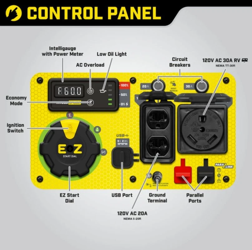 Monitor voltage, frequency and operating hours with ease, plus the EZ Start Dial simplifies startup while Economy Mode monitors power consumption in real time