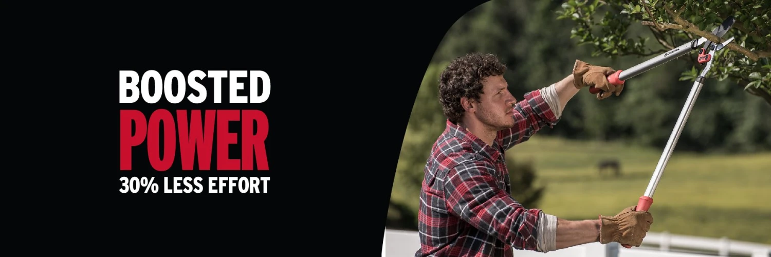- Dual Link compound cutting action magnifies input force to reduce work when cutting limbs and branches