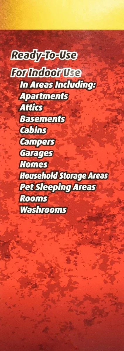 Convenient, easy to use three-pack eliminates cockroaches, ants, fleas, flies, Palmetto Bugs, spiders, waterbugs, and other insects and keeps killing for 12 weeks. For use in homes, apartments, attics, basements, garages, kennels and cabins. Each 2-oz fogger treats up to 2000 cu. ft. Non-staining, water-based formula leaves no oily residue. For Indoor use.