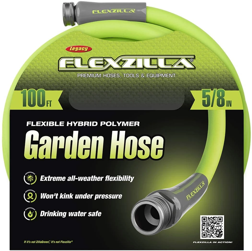 Flexzilla® Garden Hose was engineered with a lightweight Flexible Hybrid Polymer to lie flat and eliminate kinking under pressure. It redefines flexibility, making it easy to maneuver around trees, bushes or other obstacles. Zero memory means your sprinkler stays put without twisting. And Flexzilla Garden Hose doesn’t fight you when you coil it. Plus, with our superior O-ring you get a long-term, leak-free connection at the spigot. The Flexible Hybrid Polymer inner tube material is drinking water safe. (Limited Lifetime Warranty)