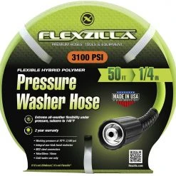 Flexzilla® offers a revolutionary pressure washer hose that redefines flexibility, even under pressure. Unlike other pressure washer hose, Flexzilla stays flexible when pressurized during use and offers minimal memory when depressurized. It also lays flat and won’t work against you before, during or after use. (2-year warranty)