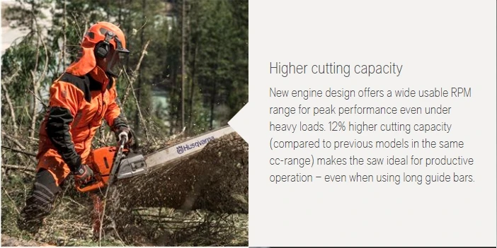 At approximatly 14.5 lbs, the 572 XP has a better power-to-weight ratio and 12% higher cutting capacity than previous Husqvarna models in the same class.