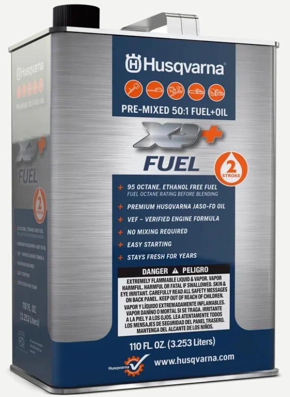 Husqvarna’s high octane fuel is mixed with our best synthetic oil blend. Specifically formulated to provide the Husqvarna handheld owner with optimal equipment performance. The fuel does not degrade or oxidize like pump gas, and stays fresh for years solving longer term storage needs. 50:1 ethanol free 95 octane fuel and oil mix. Mixed with Husqvarna’s synthetic oil blend.