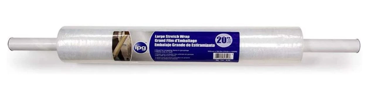 IPG’s Hand Wrap Stretch Film is a 20″ Extended Core Hand Wrap Stretch Film is a clear stretch film with superior holding strength. Sticks to only itself and provides easy bundling.