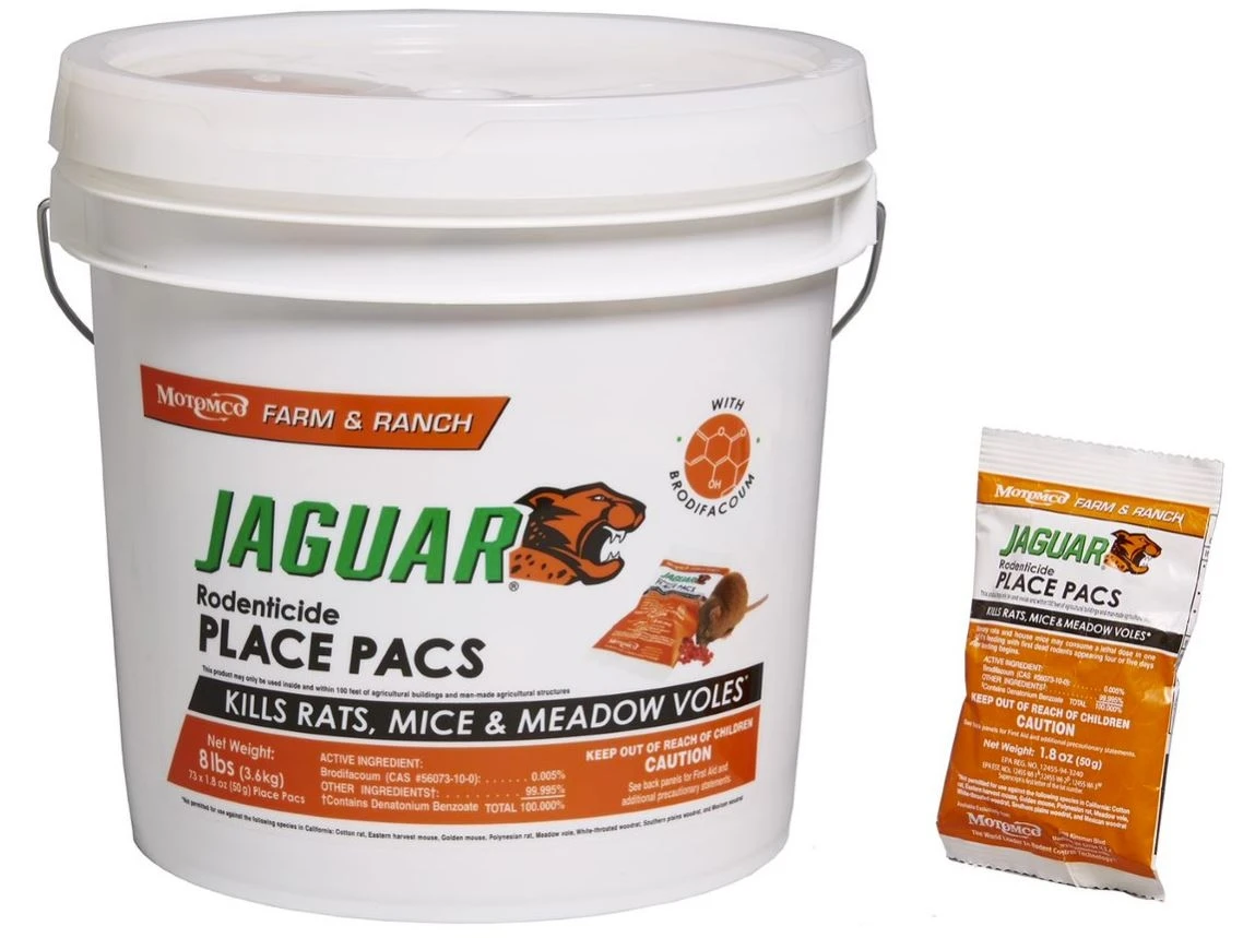Jaguar Rodenticide contains the active ingredient Brodifacoum, Motomco’s most powerful anticoagulant. Jaguar is our best-selling brand with poultry and swine producers and is especially successful at cleaning out tough infestations. For baiting around agricultural buildings and areas with a lot of rodent pressure, Jaguar is the choice that works.