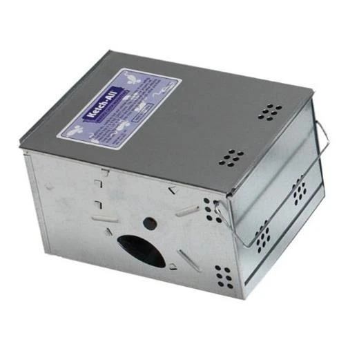 Your search for a better mousetrap ends here. The Ketch-All operates without the use of harmful chemicals, baits or poisons and is safe for use around children and pets. Catches multiple mice in one setting. Sanitary disposal lets you simply slide lid back and dispose of mice at your discretion. Durable galvanized steel housing. U.S.A.