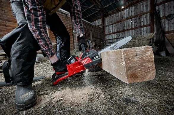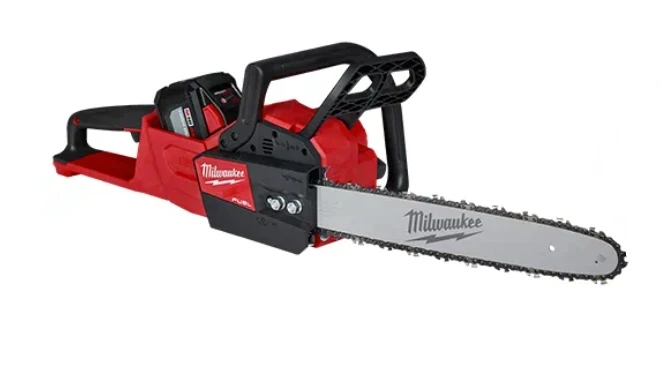 The Milwaukee® M18 FUEL™ 16″ Chainsaw delivers the power to cut hardwoods, cuts faster than gas, and delivers up to 150 cuts per charge. The unit is designed to meet the performance, durability and ergonomic needs of professional landscape maintenance, power utility, and the installed M18™ user. The POWERSTATE™ Brushless Motor maintains speed under heavy loads without bogging down to outperform small gas engines and higher voltage systems. REDLINK PLUS™ intelligence ensures maximum performance and protection from overload, overheating and over discharge. The M18™ REDLITHIUM™ HIGH OUTPUT™ HD12.0 battery delivers unmatched run-time in all applications. M18 FUEL™ technology allows the unit to reach full throttle in under 1 second providing ultimate control and productivity.