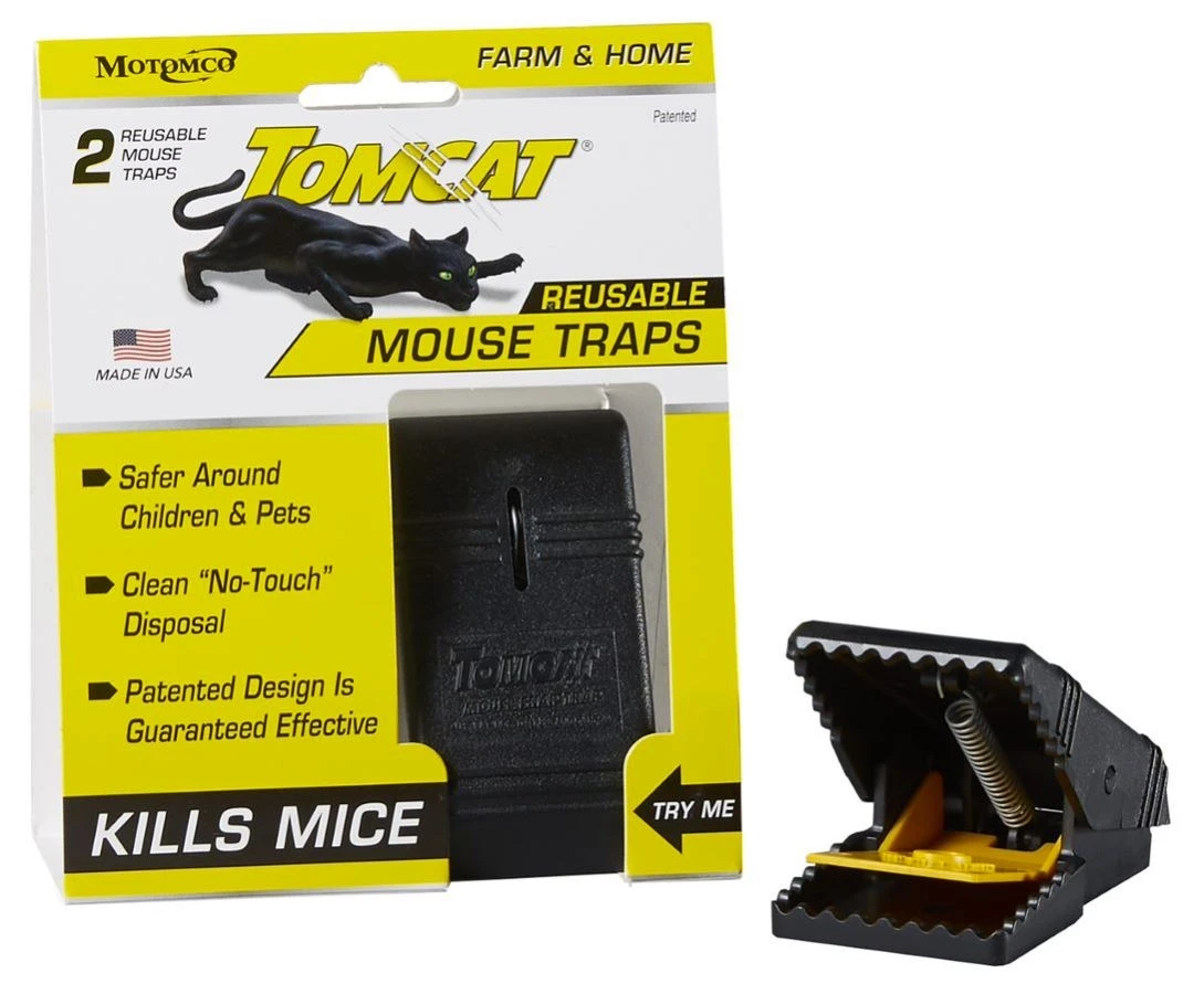Tomcat snap mouse trap.-Contains bromethalin.-Mechanical traps are ideal for capturing the occasional intruder or as a part of a more extensive control program.-Easy to work and reusable traps.-Safe around children and pets.-Clean no touch disposal with automatic reset.-2 Pack size.