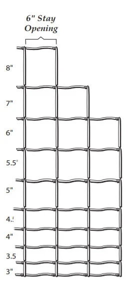 Field Fence (woven wire) is manufactured in a wide selection of heights and styles featuring a graduated spacing that starts with small openings at the bottom which helps prevent entry from small animals.
