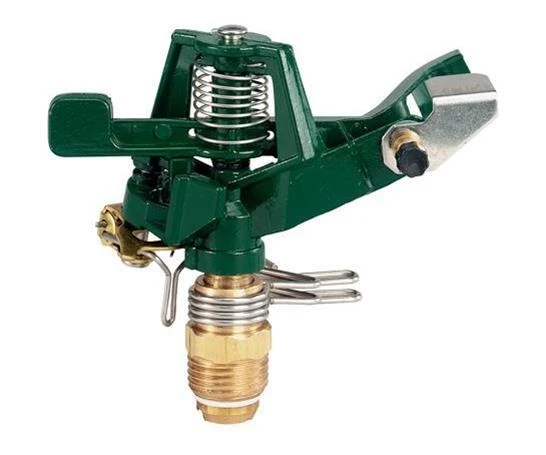 The 1/2 In. Impact Sprinkler Head is constructed of zinc designed to water up to an 80 Ft. diameter. The easily adjustable spray nozzle can be modified from a partial to full circle. The 1/2 In. Impact Sprinkler Head also features a deflector shield and anti-backsplash arm to aid in spray pattern and area coverage.