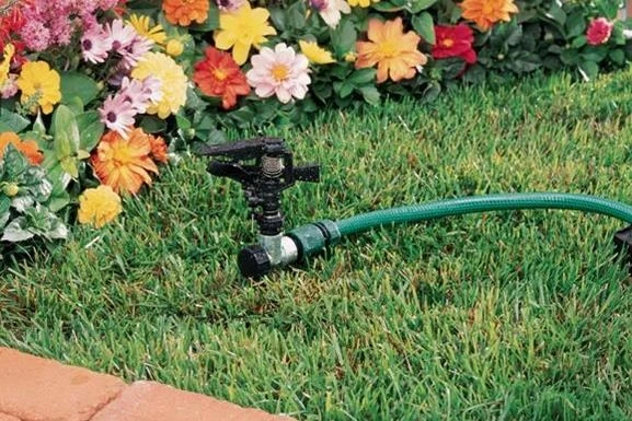 This sprinkler is designed to be used either as a single sprinkler or connected in a series.