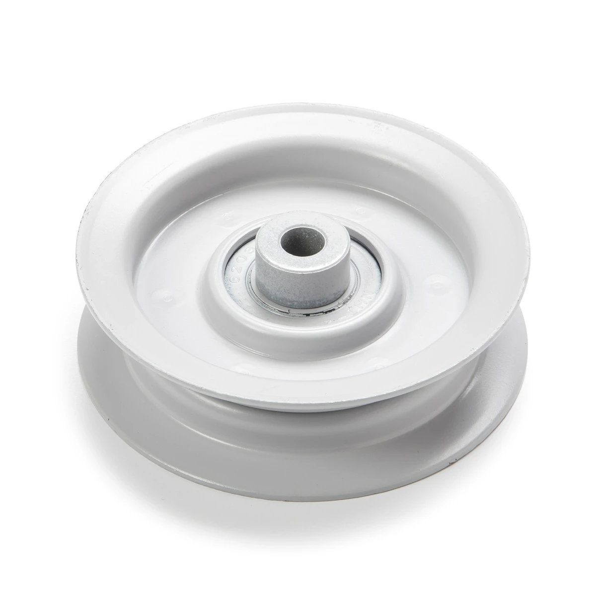 This flat idler pulley is for drive belt and mower deck on many 12-22 HP front engine tractors.