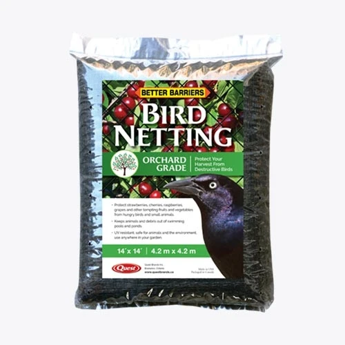 Quest Better Barriers Bird Netting is a protective netting to keep birds and other small animals from eating tempting fruits and vegetables.