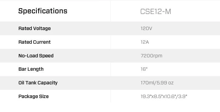 120V 12A motor providing the power to cut limbs, branches and trees.
