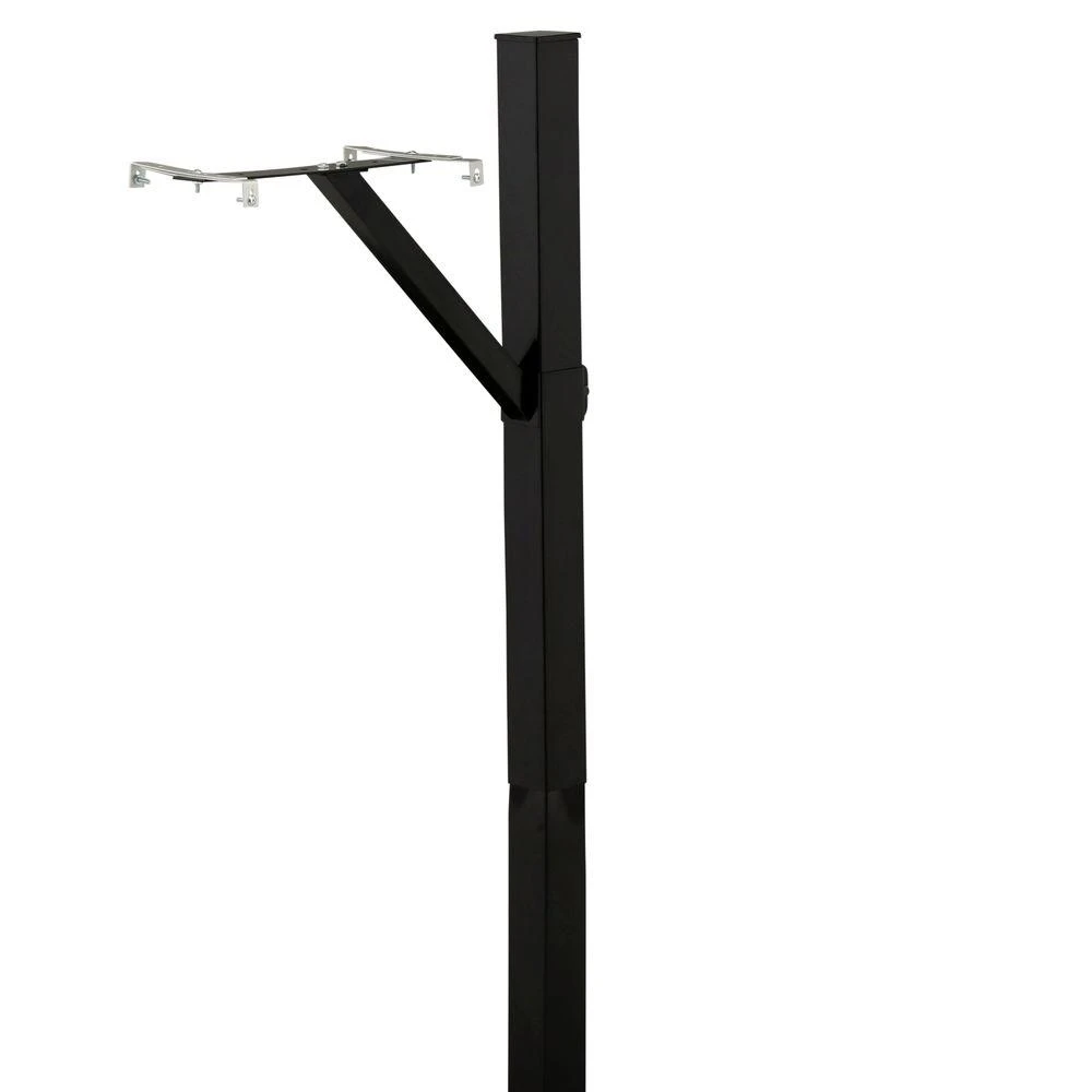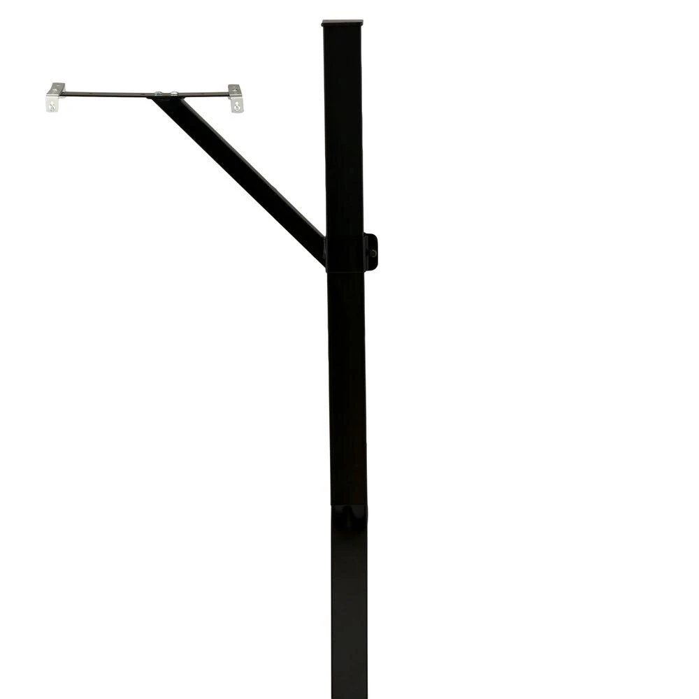 Black square drive-in post. The rust-resistant steel post and crossarm feature a black powder-coated finish that offers the utmost in durability and good looks. The post can be installed directly in the ground without the need for digging, while the crossarm is adjustable. The post is 60″ H.