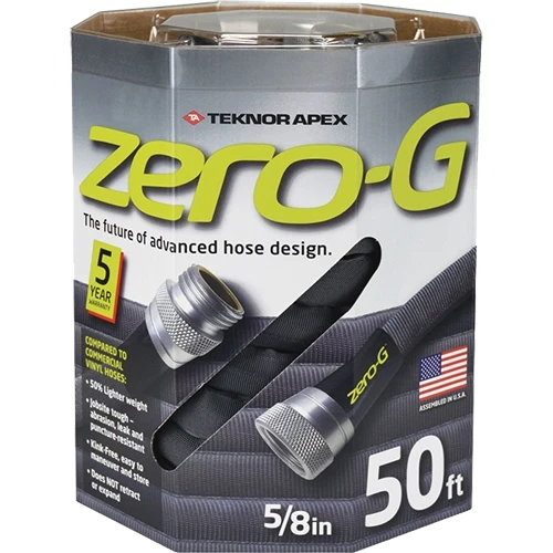 This 5/8″ x 50′ Teknor Apex Zero-G Garden Hose launches the future of advanced hose design. The commercial-grade hose utilizes a G-Forceâ„¢ woven fiber jacket that resists leaks, abrasions and punctures for dependable performance and long life.