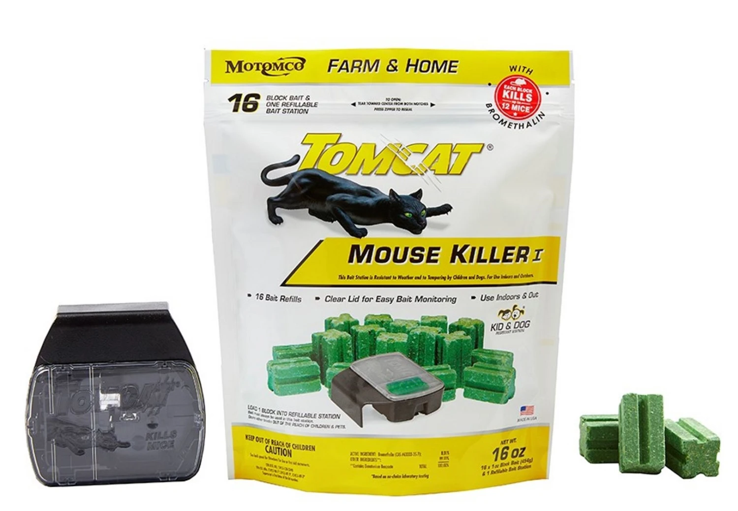 Tomcat Mouse Killer I with Refillable Bait Station contains one Tier 1 Refillable Bait Station and 16 x 1 oz. of Block Bait Refills. Effectively controls mice while providing the security of a Tier 1 child and dog resistant station. All Tomcat consumer size baits are made with Bromethalin – an acute, non-anticoagulant active proven to kill mice faster than anticoagulant baits. Each Block kills up to 12 Mice, based on no-choice laboratory testing.
