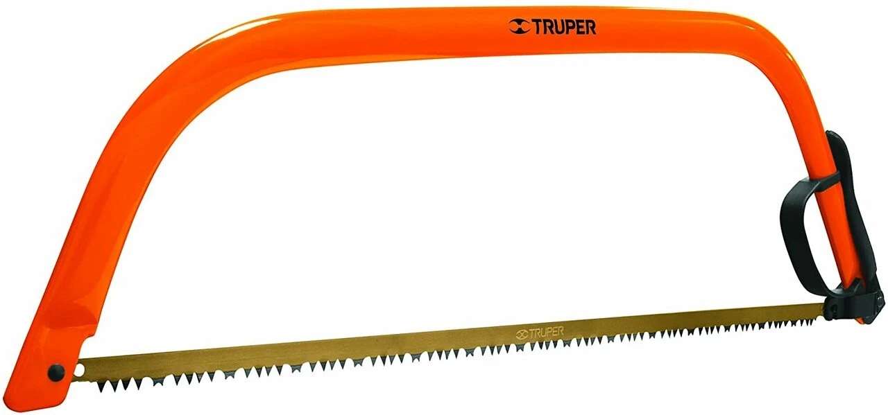 Upgrade your tools with this Truper 30261, 30″ Bow Saw. It’s ideal to use for cutting large branches. The Truper bow saw features a cam lever system that keeps the blade tight when you’re cutting. It also includes a steel handle that’s specially shaped for a secure grip, and it’s painted for rust and corrosion resistance. Additionally, this model has a quick blade release system for easy changing.