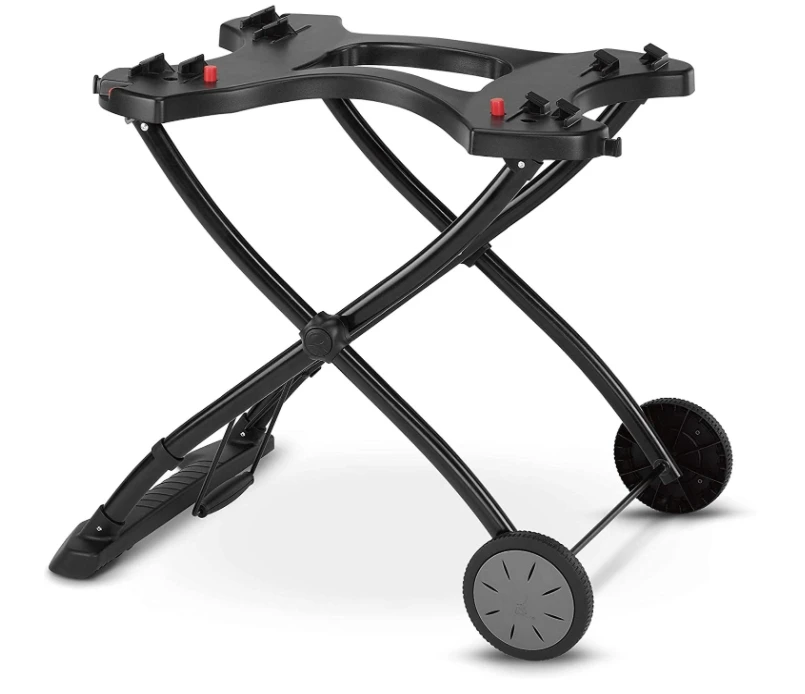 Grill beyond your patio. The Portable Cart is designed to make grilling on-the-go as easy as flipping a burger. Place your Q grill onto the cart and use it as a stationary stand that sits at the optimal grilling height. When ready to take your grilling adventures on the road, simply fold it down and roll it to your car or straight to the beach.